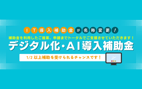 デジタル化・AI導入補助金 2026中小企業・小規模事業者が対象の、業務効率化などを目的としたITツール導入に活用できる補助金です。申請業務をトータルサポートします。